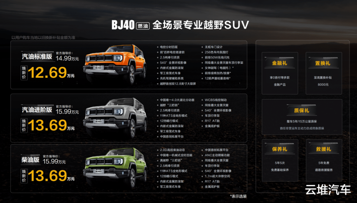 配置“竞赛”:10-15万区间新车,无论城市SUV还是硬派风格SUV,大尺寸屏幕、智能车机、氛围灯等提升科技感的配置已成为“标配”竞争点。BJ40燃油版的双大屏和无框车门是此趋势下的差异化尝试。